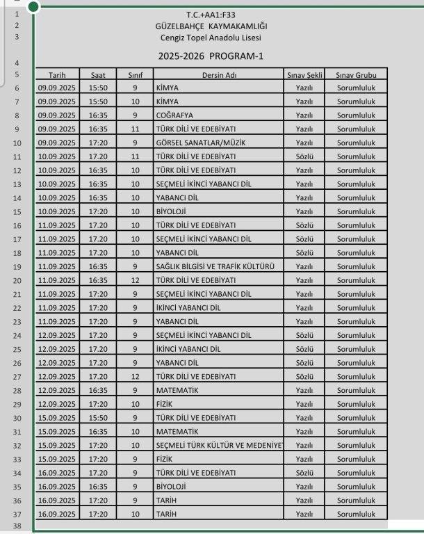 15 Eylül 2025 itibariyle geçerli sınıf haftalık el programlarına...